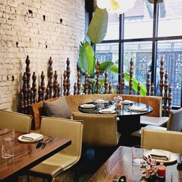 4.5 overall. The food was great, but the portions are small and the prices are not cheap. The interior is nicely decorated and they have a cool outdoor space. Our waiter, Gunner, was friendly and knowledgeable. As a group of four, we ordered 2 corn fritters (they are big so we split them in half), the trio of satays (chicken, scallop and chickpea), the sugar snap peas, grilled branzino, duck curry, lobster noodles and nasi goreng. Everything was delicious but the standouts were the corn fritters, chicken and scallop satay, duck and lobster noodles (creamy black pepper sauce). The corn fritter was light and flavorful and the satays were delicious. I am not a big scallop fan but I loved these, the scallops were cooked perfectly and came in what I would describe as a beurre blanc. The chickpea satay was enjoyable, but the chicken (amazing peanut sauce) and scallop were far superior. The branzino was cooked perfectly and had a light sauce underneath it with asparagus which we liked alot. The snap peas were tasty, but nothing to write home about. The nasi goreng was enjoyable but made better by adding the hot sauce on the table to it. The lobster noodles were very good though a bit heavy. The duck was cooked perfectly and the sauce it came with was addictive. We all left feeling satiated and enjoyed the meal and ambiance. I would recommend it and would go back with the caveat that it can be pricey as you have to order alot of dishes to feel full.