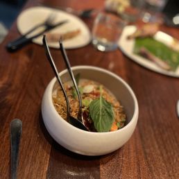 Visited Wayan on a busy Friday night and I was so impressed with everything. My friend was running 30 minutes behind on our reservation, and they still were able to seat us inside, and we were sat with such a gem of a server! He was so thoughtful and had great suggestions! The restaurant is on the pricier side with small portions, but it's backed up with great flavors! We really loved the veggie spring rolls and of course the lobster noodles. We had a few different cocktails throughout the evening and all were very good. The shrimp skewers were lacking something for me, but we really enjoyed the scallop skewers! I would come back with a larger group so I could try a bit of everything! One important note, if you're vegan this is a hard restaurant to eat at with only about three things that you can eat. A lot of the ingredients are prepped ahead of time so even something like the chickepea and mushroom satay can't be made vegan because of the marinade. That being said, my friend ordered the roasted cauliflower and it was a beautiful dish!